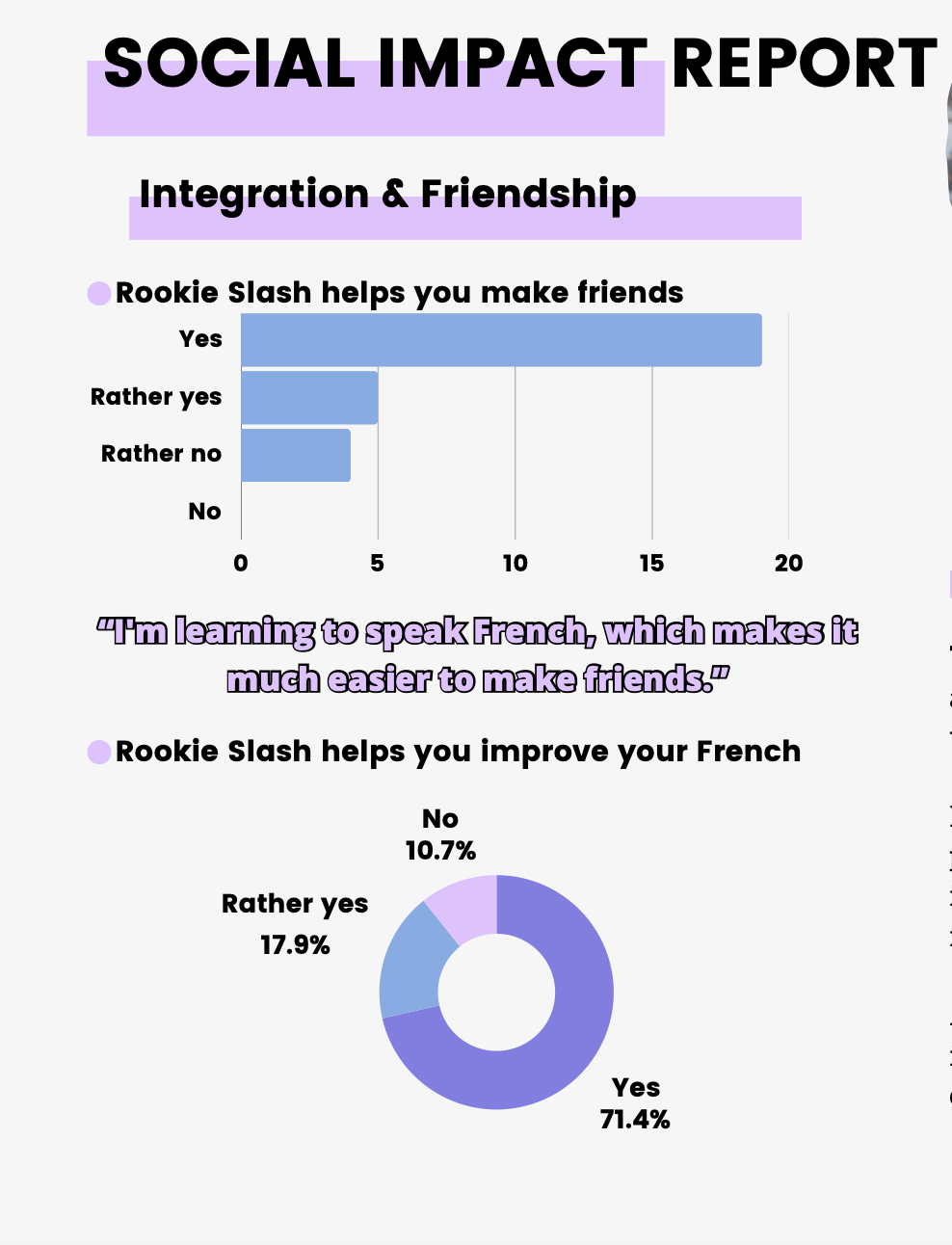 This annual report is much more than just a summary of what we've done: it's a reflection on who we are, what we stand for, and where we're going. You'll find an introduction to Rookie Slash and our team, an overview of our activities and their frequency, and an assessment of our social impact. We also share what we've learned and our prospects for the years ahead.
